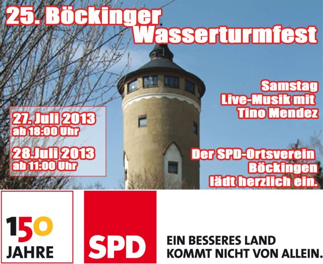 Zum 25. Mal findet das traditonsreiche Fest am 27. und 28.07.2013 rund um den Böckinger Wasserturm statt.