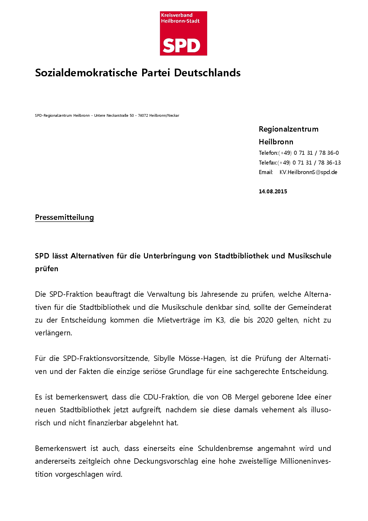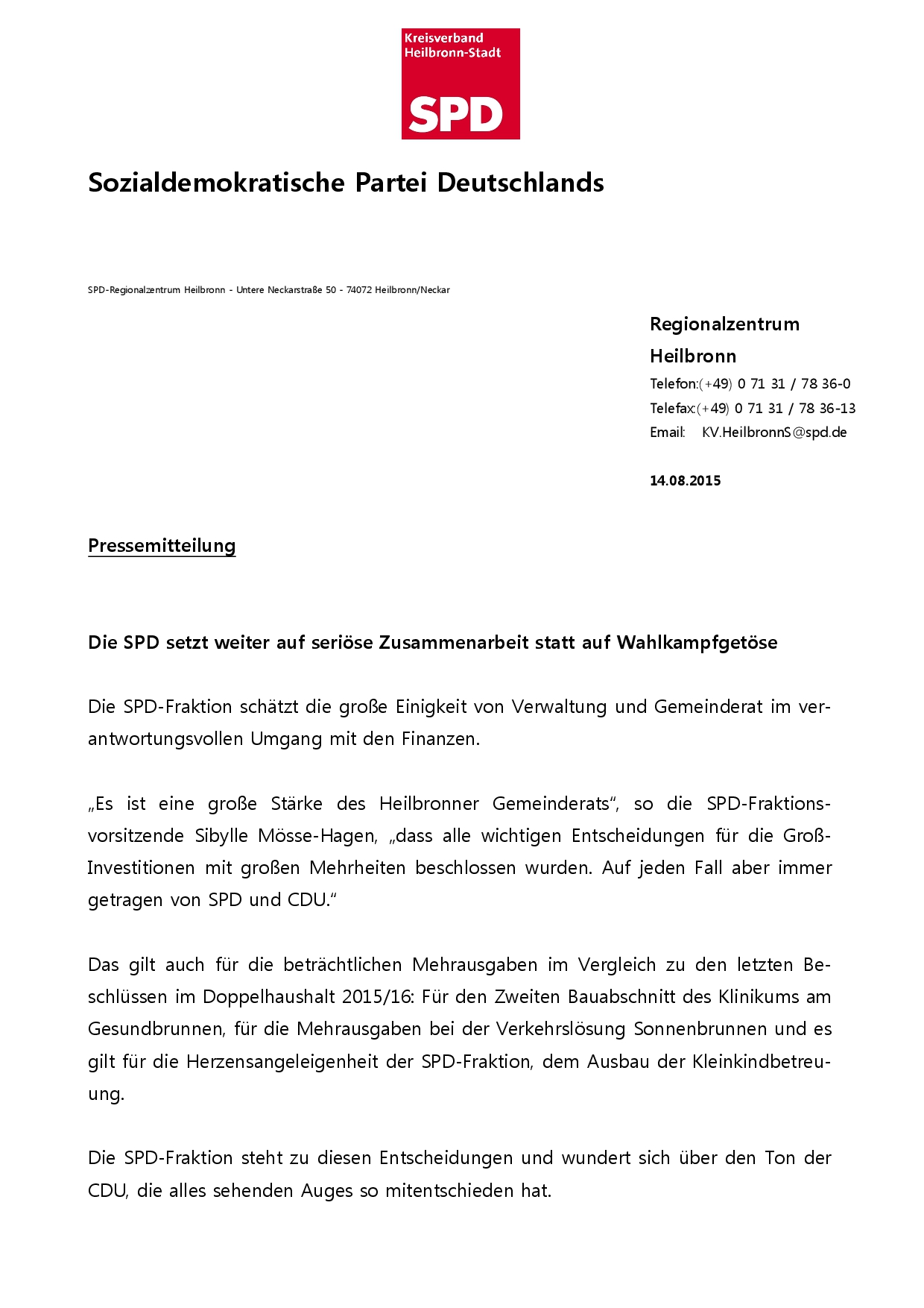 Hier finden Sie die Pressemitteilungen der SPD-Gemeinderatsfraktion