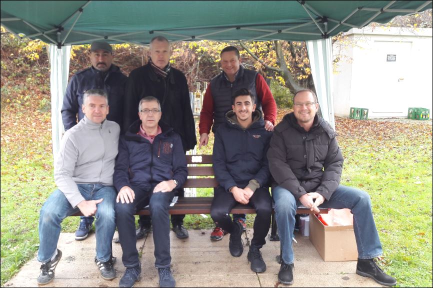 Die Idee stammte von SPD-Stadtrat Herbert Tabler. Im Kreuzgrund wohnende Menschen, die unter anderem im Kaufland an der Neckargartacher Straße einkaufen, haben per pedes lange Wege zurückzulegen. Dies mit schwerer Einkaufstasche im Schleptau gestaltet sich oft als sehr anstrengend. Daher wurde eine Sitzbank, in Höhe der Wendeplatte des Reiherweges, vom Grünflächenamt Heilbronn auf Steinplatten montiert. Diese Kosten hatte der SPD Ortsverein Böckingen in Form einer Spende übernommen. Trotz der widrigen Wetterverhältnisse zeigte sich der gute Zusammenhalt der Stadt- und Bezirksbeiräte in Böckingen. Alle waren anwesend und haben zusammengeholfen. Markus Scheffler, Harald Pfeifer und Herbert Tabler als amtierende Stadträte, sowie Bezirksbeiratssprecher Matthias Suleder mit den Bezirksbeiräten Fatih Bingöl, dessen Sohn Burak Bingöl (Jugendgemeinderat), und Markus Rieger, der die Organisation dieser Aktion übernommen hatte. "Eine lobenswerte Aktion des Böckinger Ortsvereins", merkte Rainer Hinderer, Landtagsabgeordneter und Kreisvorsitzender, hierzu an. Zunächst wurde das Widmungsschild angebracht, es folgten kurze Worte des Ortsvereinsvorsitzenden, Harald Pfeifer, um abschliessend mit den Saft- und Schaumweinspenden der Firma Gunkel Natursäfte anstossen zu können.