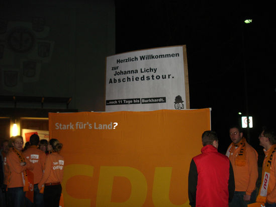 Mit einer Plakataktion vor der CDU-Versammlung in der Harmonie.
