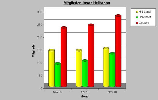Der Juso Kreisverband Heilbronn Stadt und Land kann weiter hin einen erfreulichen Mitgliederzuwachs verzeichnen. Bereits im April konnten die Jusos im Stadt- und Landkreis einen Anstieg der Mitglieder von ca. 5 % verzeichnen. Der positive Trend hat sich fortgesetzt und führte in den letzten 12 Monaten zu einem Gesamtzuwachs von knapp 20 % auf 280 junge Menschen die sich für eine gerechtere Gesellschaft politisch engagieren.