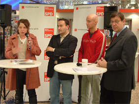"Radioquote: Bevormundung oder größere Vielfalt ?" - Unter diesem Motto diskutierten im Heilbronner Wollhauszentrum SPD-Parteiratsmitglied Tanja Sagasser, Steffen Kiedinger (Band "Scheinfrei?"), Daniel Abbou (Südwestrundfunk) und Jörg Tauss MdB.
