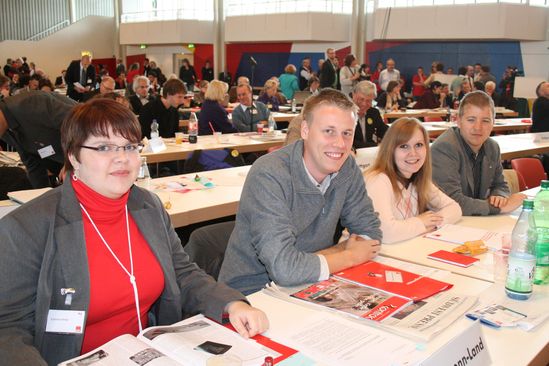 Corinna, Markus, Katharina und Andreas auf dem Landesparteitag in Ulm. Der Jugend eine politische Stimme geben, ist eines der Ziele der Jusos, dies ist auf dem SPD Landesparteitag gut gelungen. Die Heilbronner Jusos waren mit vier Delegierten am vergangenen Samstag in der Ulmer Donauhalle vertreten. Der Parteitag gliederte sich in zwei Phasen. Zu beginn stand die Rede des Spitzendkandidaten für die Landtagswahl Dr. Nils Schmid und seine anschließende offizielle Nominierung im Mittelpunkt. Im Anschluss daran folgten, teils sehr kontroverse inhaltliche Debatten um den zukünftigen Kurs der Partei.