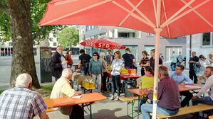 Grillen fürs Grundgesetz. Die Neckarmeile wird zur Roten Meile. Viele Interessierte trafen sich vor dem Regionalzentrum der SPD. Eine Klasse Idee vom Team Josip Juratovic!
