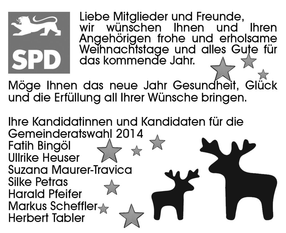 Frohe Weihnachten wünscht der SPD-Ortsverein Sontheim!